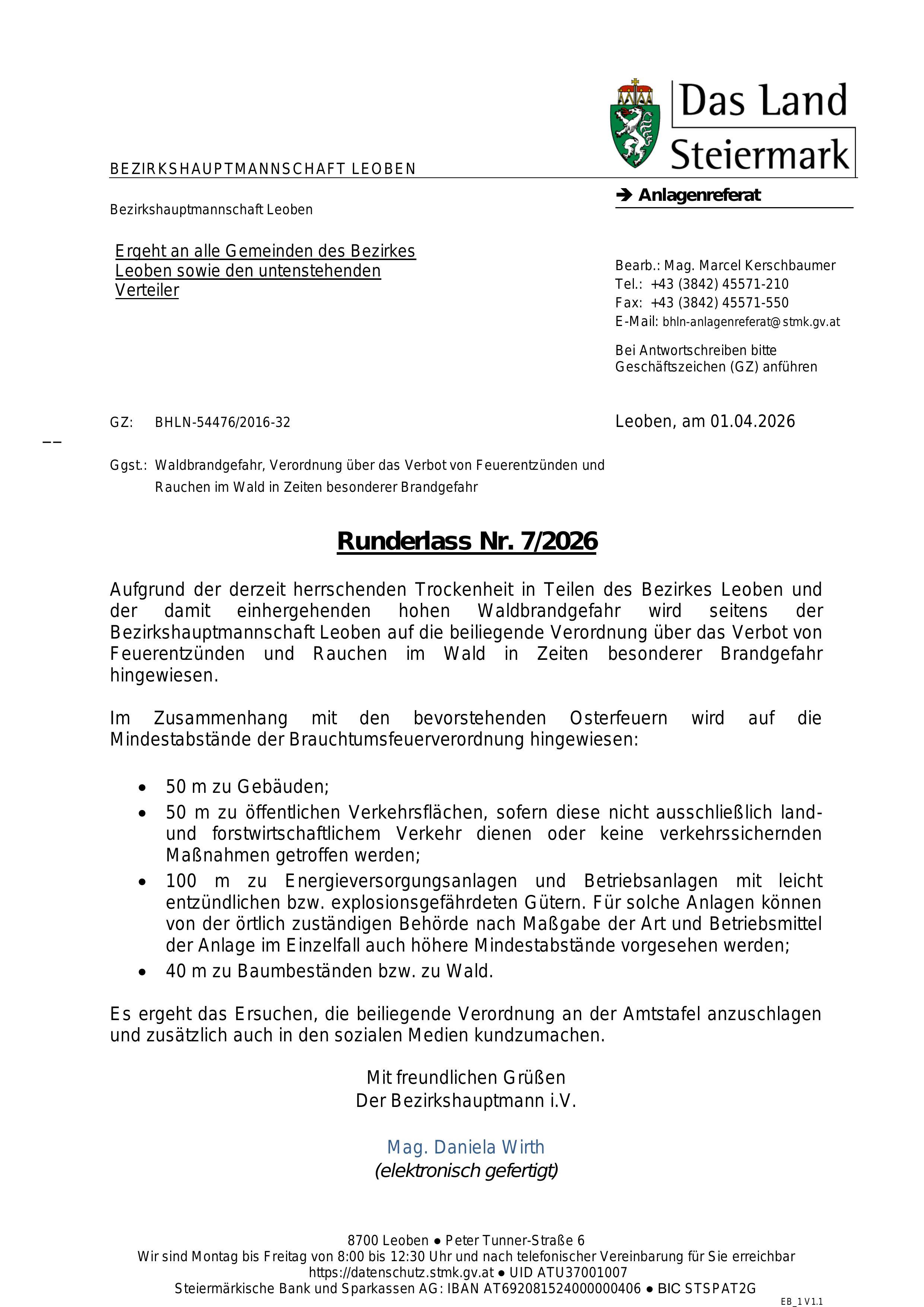 Verordnung über das Verbot von Feuerentzünden und Rauchen im Wald in Zeiten besonderer Brandgefahr